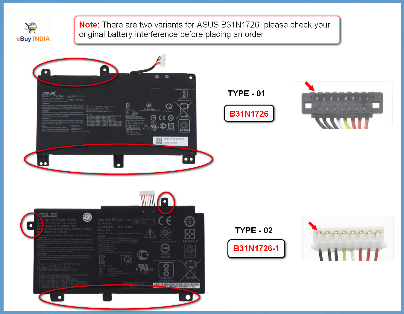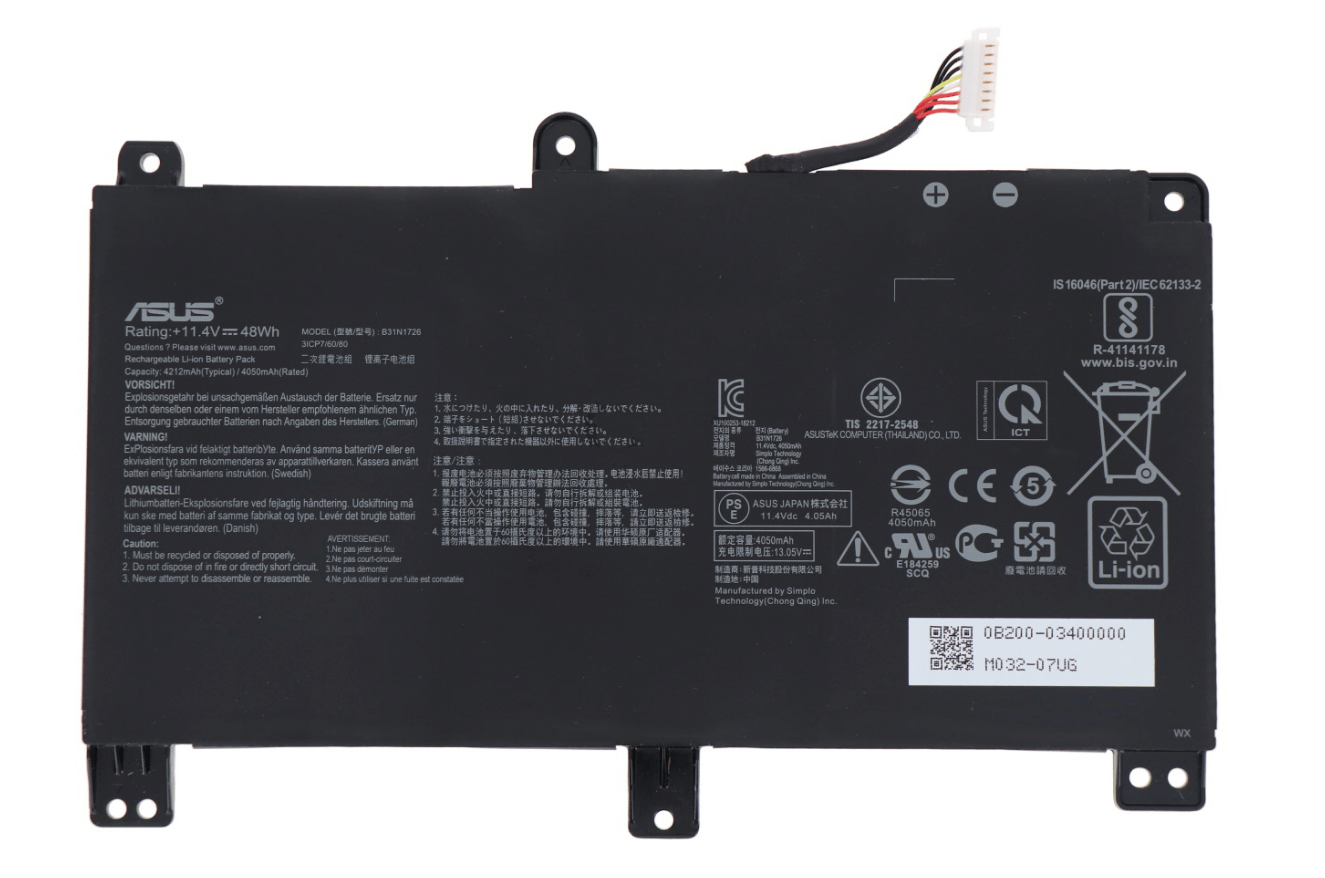 - Supplied Model no will be B31N1726 TYPE-1. ASUS Part no may be Different.