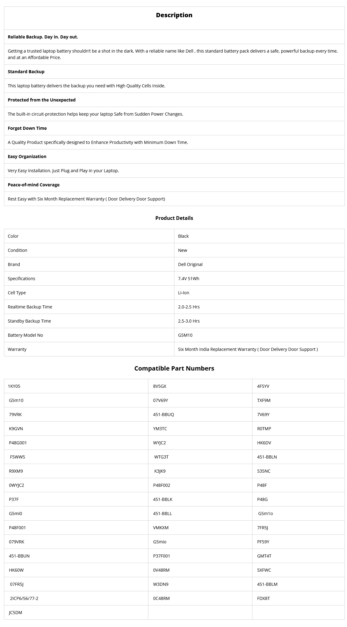 - Supplied Model no will be G5M10. Dell Part no may be Different.