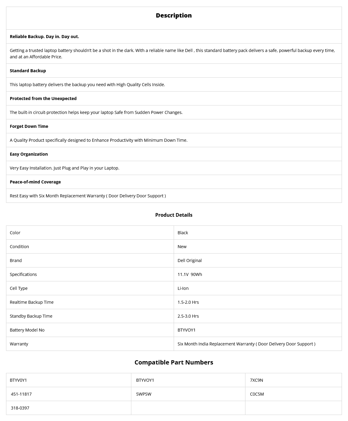 - Supplied Model no will be BTYVOY1. Dell Part no may be Different.